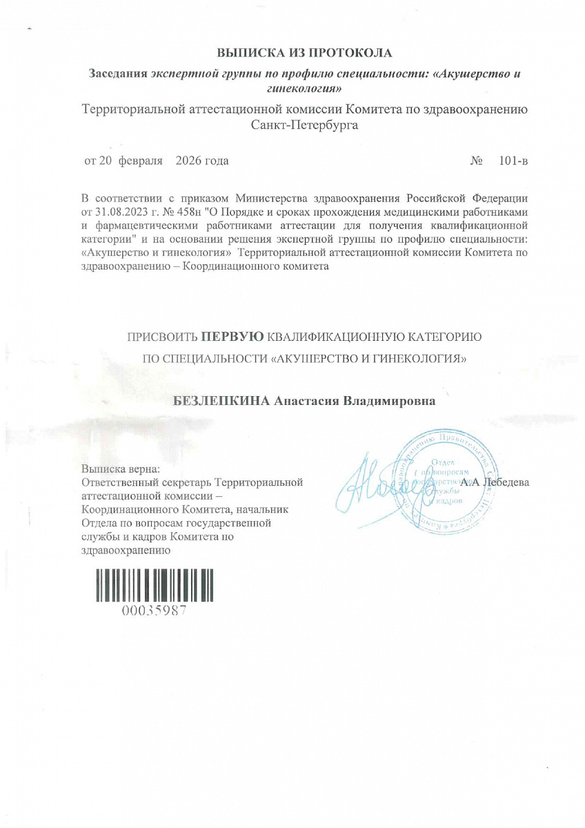 Я хочу выразить огромную благодарность врачу гинекологу Безлепкиной Анастасии Владимировне за ее профессионализм и заботу во время моей беременности. Я обратилась к ней когда ещё планировала беременно...