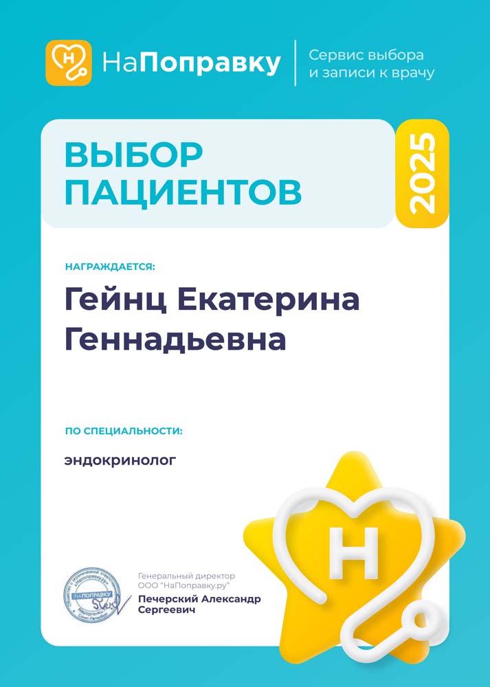2016 г. - Военно-медицинская академия имени С. М. Кирова, «Эндокринология»