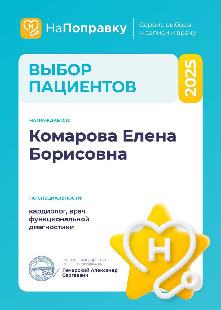 В феврале 2025 года пришла к Елене Борисовне с высоким давлением. Доктор сделала ЭКГ, назначила анализы, подобрала хорошее лечение, которое мне действительно с первого раза подошло, дала подробные рек...
