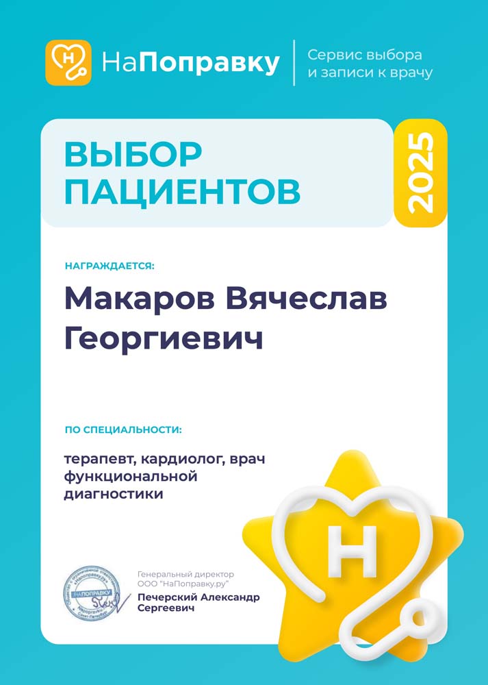 2020 г. - профессиональная переподготовка по кардиологии в СЗГМУ им. Мечникова, кафедра госпитальной терапии и кардиологии