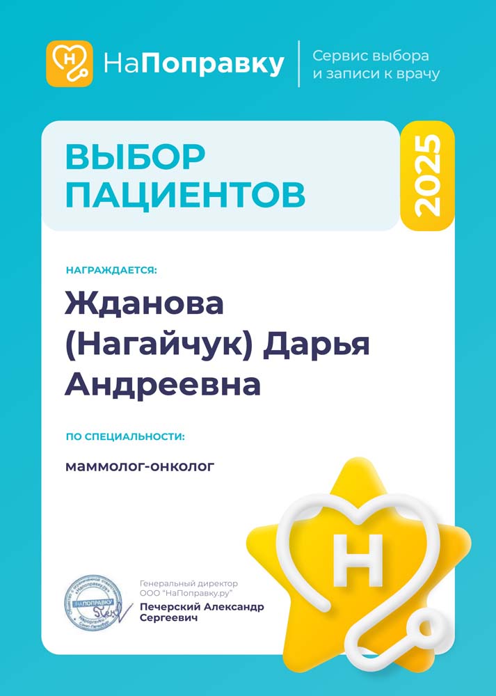 Врач онколог-маммолог, врач ультразвуковой диагностики (УЗД), специалист по лактации Лауреат премии "Выбор пациентов" портала НаПоправку 2022, 2023, 2024, 2025 гг.