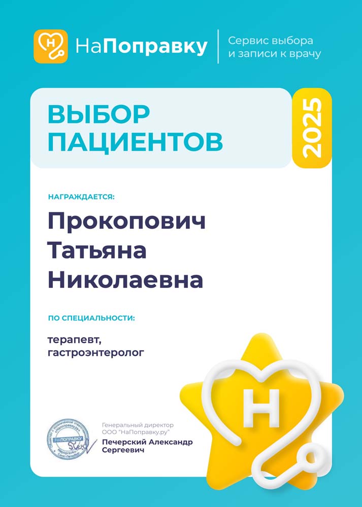 На приеме у Прокопович Татьяны Николаевны меня абсолютно все устроило! Считаю, что длилось посещение столько, сколько положено. Началось оно, кажется без задержки, все вовремя. В процессе консультации...